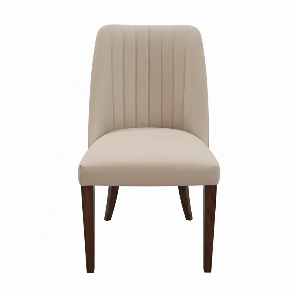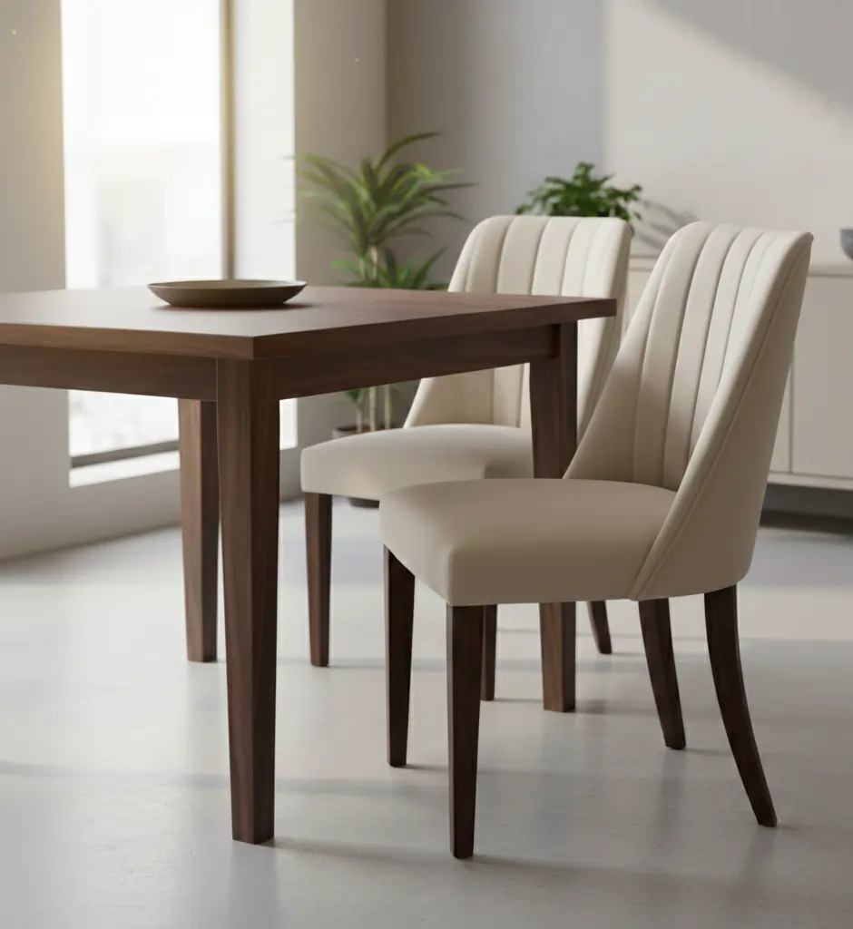 La chaise Nexo se démarque par son dossier haut à surpiqûres verticales, créant un effet de relief “canelé” très tendance. Ce travail de tapisserie apporte une verticalité qui agrandit visuellement l’espace autour de la table. Son profil épuré, dépourvu d’accoudoirs, lui permet de s’intégrer harmonieusement même dans les salles à manger les plus compactes sans compromettre le confort.