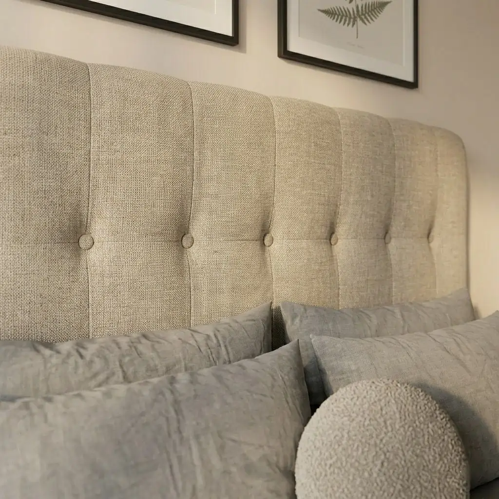 Revêtu d’un tissu doux et délicat, GAYA séduit par ses finitions minutieuses et son allure intemporelle. Sa tête de lit généreusement capitonnée apporte relief et caractère à votre espace nuit, créant une atmosphère à la fois apaisante et raffinée.